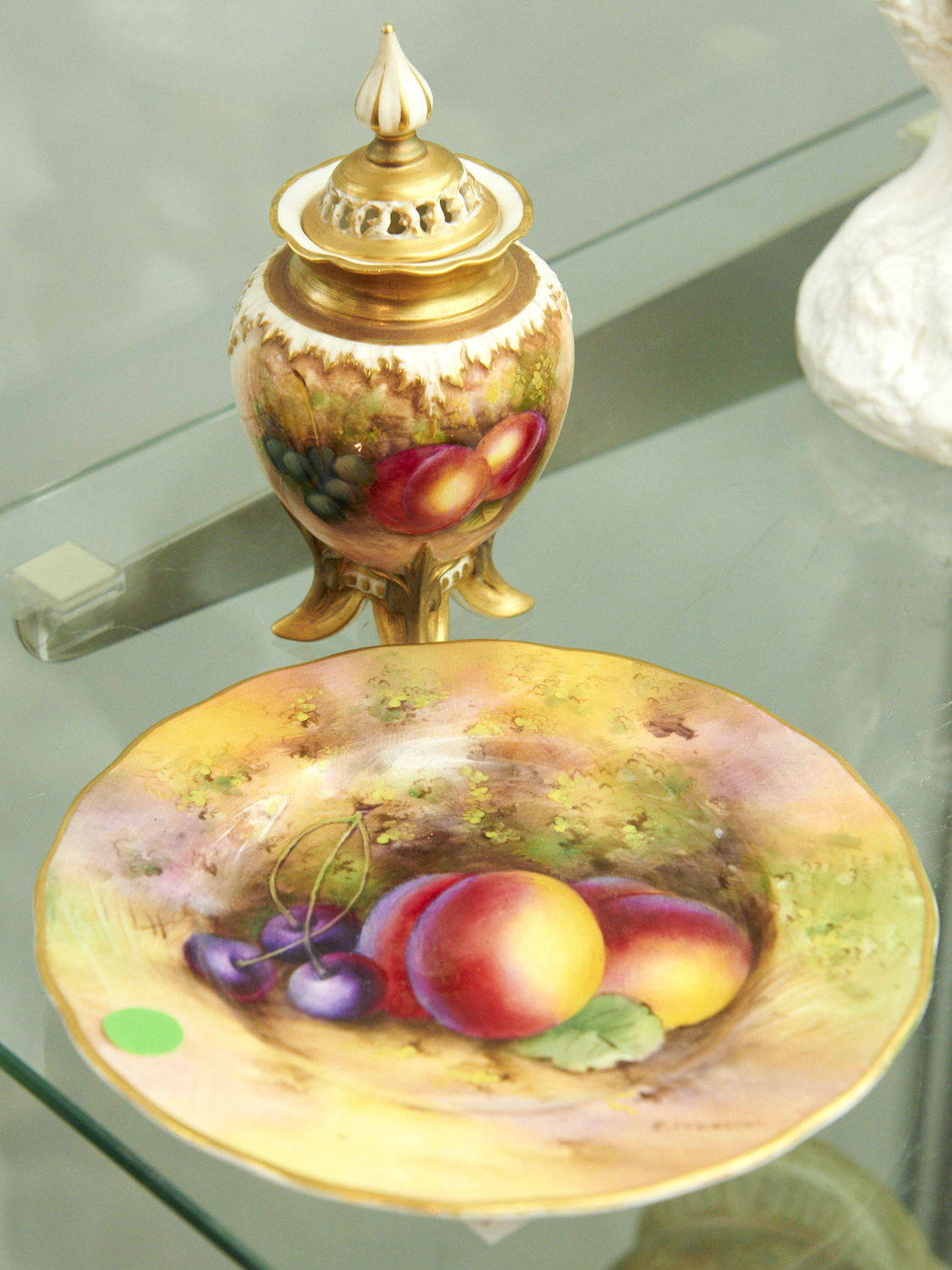 TWO PIECES OF ROYAL WORCESTER INCL. A SMALL POTPOURRI VASE DECORATED BY ROBERTS AND A PLATE BY TOWNSEND DIA.16CM (PLATE), LEONARD JOE LOCLA DELIVERY: SMALL