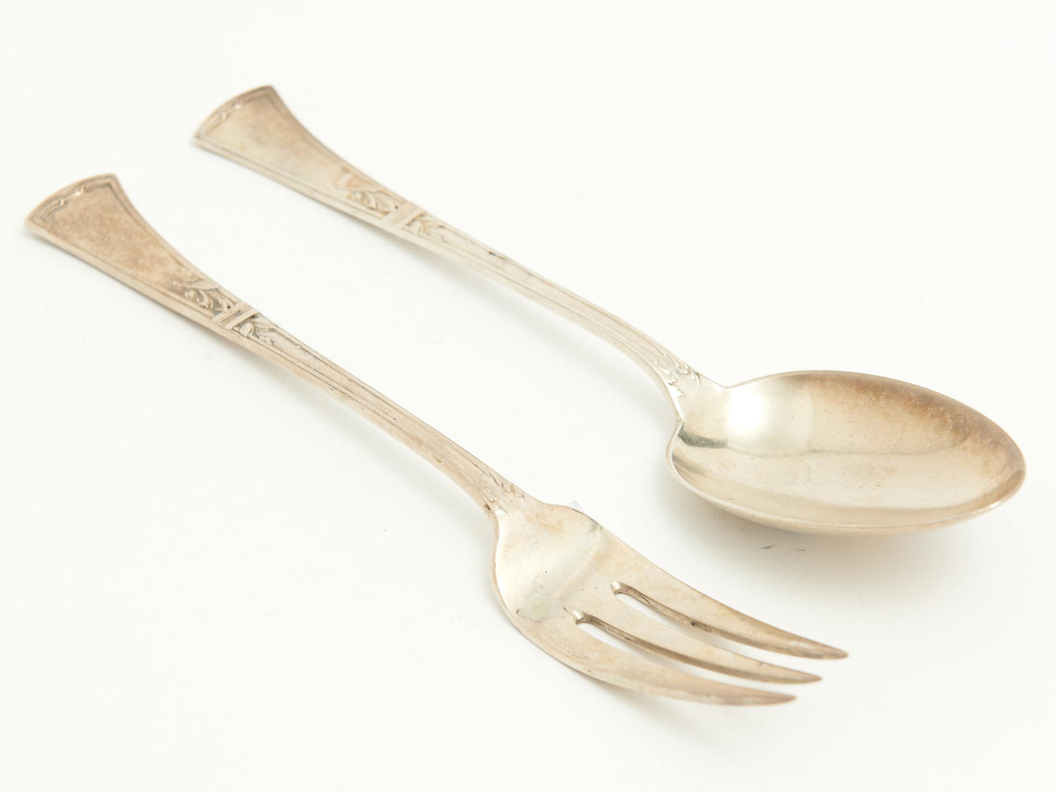 AN 800 SILVER SERVING SPOON AND FORK L.24.5CM 222G, LEONARD JOEL LOCAL DELIVERY: SMALL