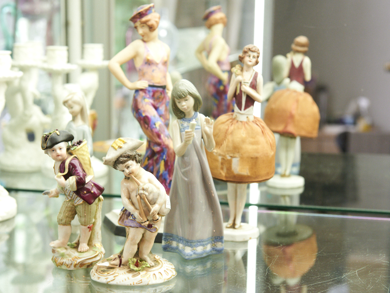 SIX PORCELAIN FIGURINES INCLUDING LLADRO, GERMAN AND CZECHOSLOVAKIA H.28CM (TALLEST), LEONARD JOEL LOCAL DELIVERY: SMALL