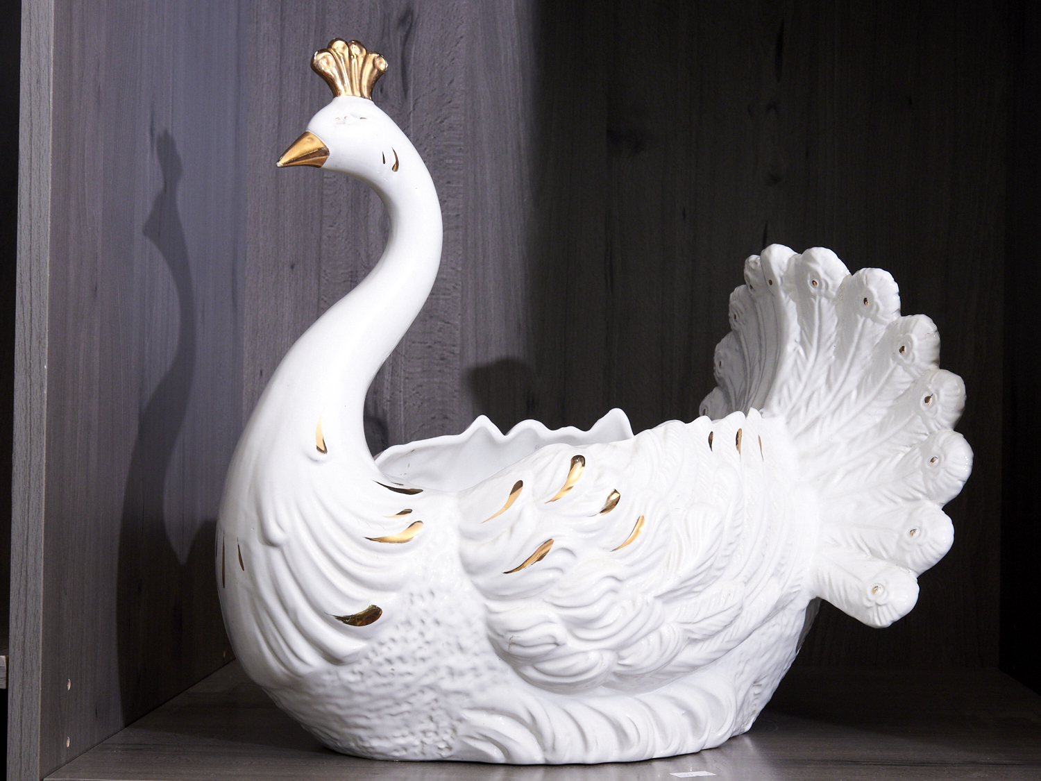 A CAPODIMONTE PEACOCK-FORM PLANTER H.40CM, LEONARD JOEL LOCAL DELIVERY: MEDIUM