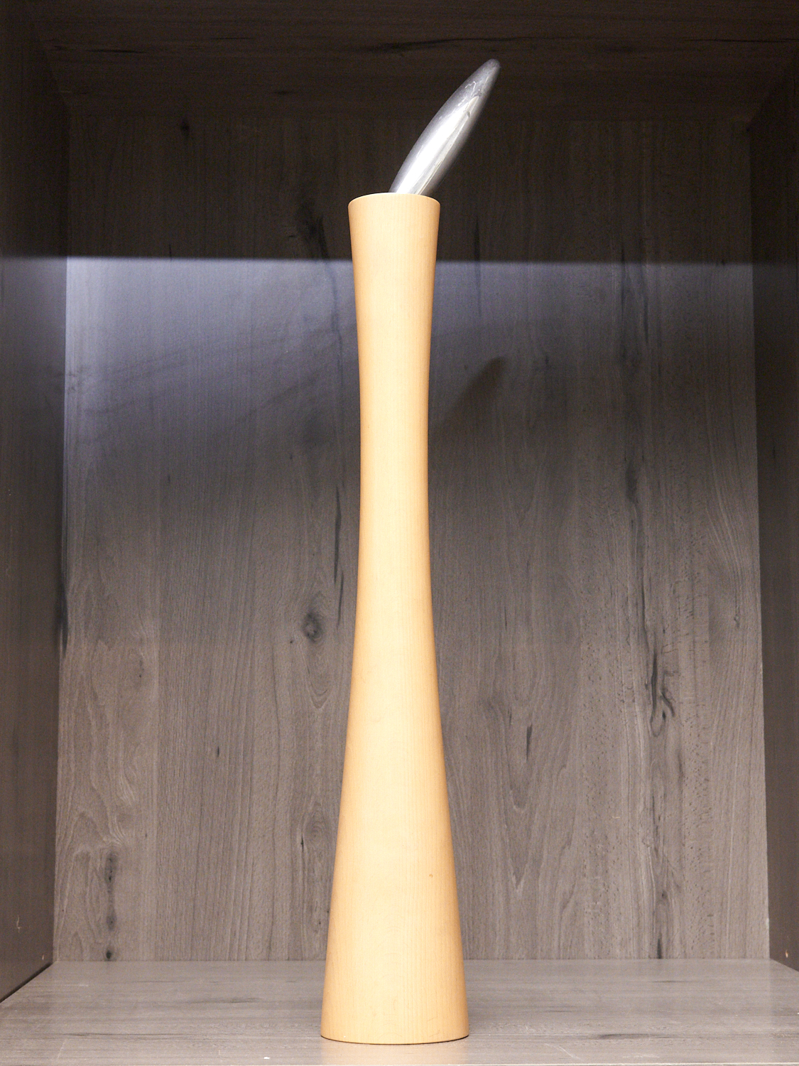 A BEECH AND ALUMINIUM PEPPERMILL MODEL MP156 BY PAOLO PAGANI FOR ALESSI/TWERGII H.60CM, LEONARD JOEL LOCAL DELIVERY: MEDIUM