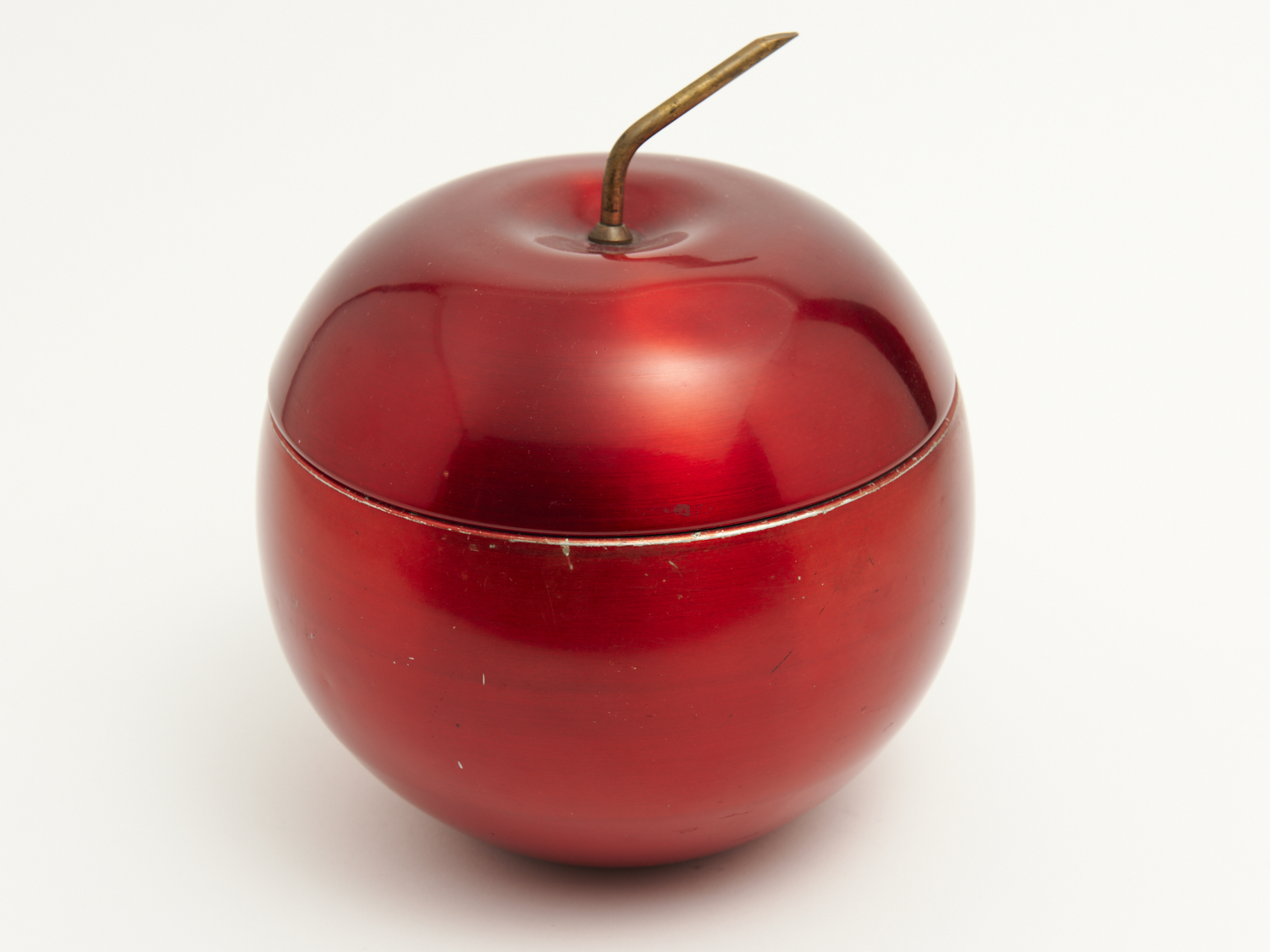 AN ANNODIZED ALUMINIUM APPLE-FORM ICE BUCKET H.23CM (A/F, SCRATCHES TO PAINTWORK), LEONARD JOEL LOCAL DELIVERY: SMALL