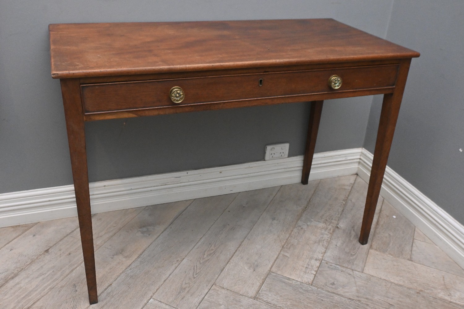 A GEORGE III MAHOGANY SIDE TABLE, EARLY 19th CENTURY (77H X 108W X 53D CM) (LEONARD JOEL DELIVERY SIZE: X-LARGE)