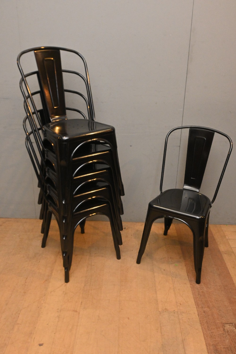 A SET OF SIX METAL DINING CHAIRS (85H X 44W X 43D CM) (LEONARD JOEL DELIVERY SIZE: X-LARGE)