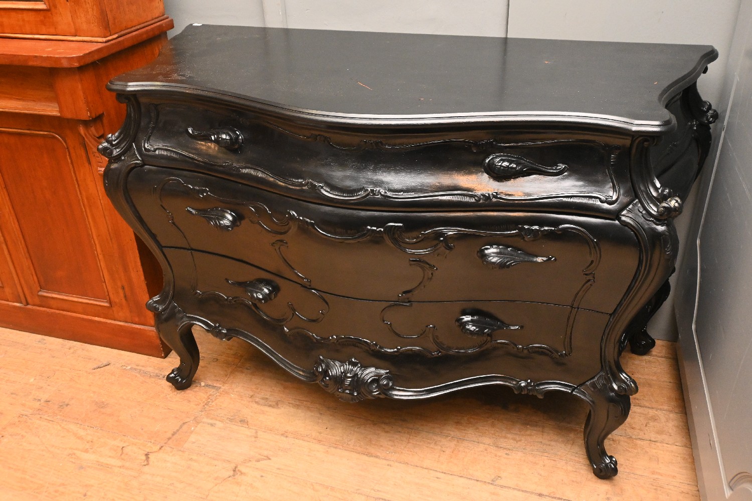 A FRENCH LOUIS XV STYLE PAINTED BOMBE COMMODE (A/F) (83H X 125W X 56D CM) (PLEASE NOTE THIS HEAVY ITEM MUST BE REMOVED BY CARRIERS AT THE CUSTOMER'S EXPENSE. LEONARD JOEL STAFF CANNOT ASSIST CARRYING THIS ITEM) (LARGE ITEM)