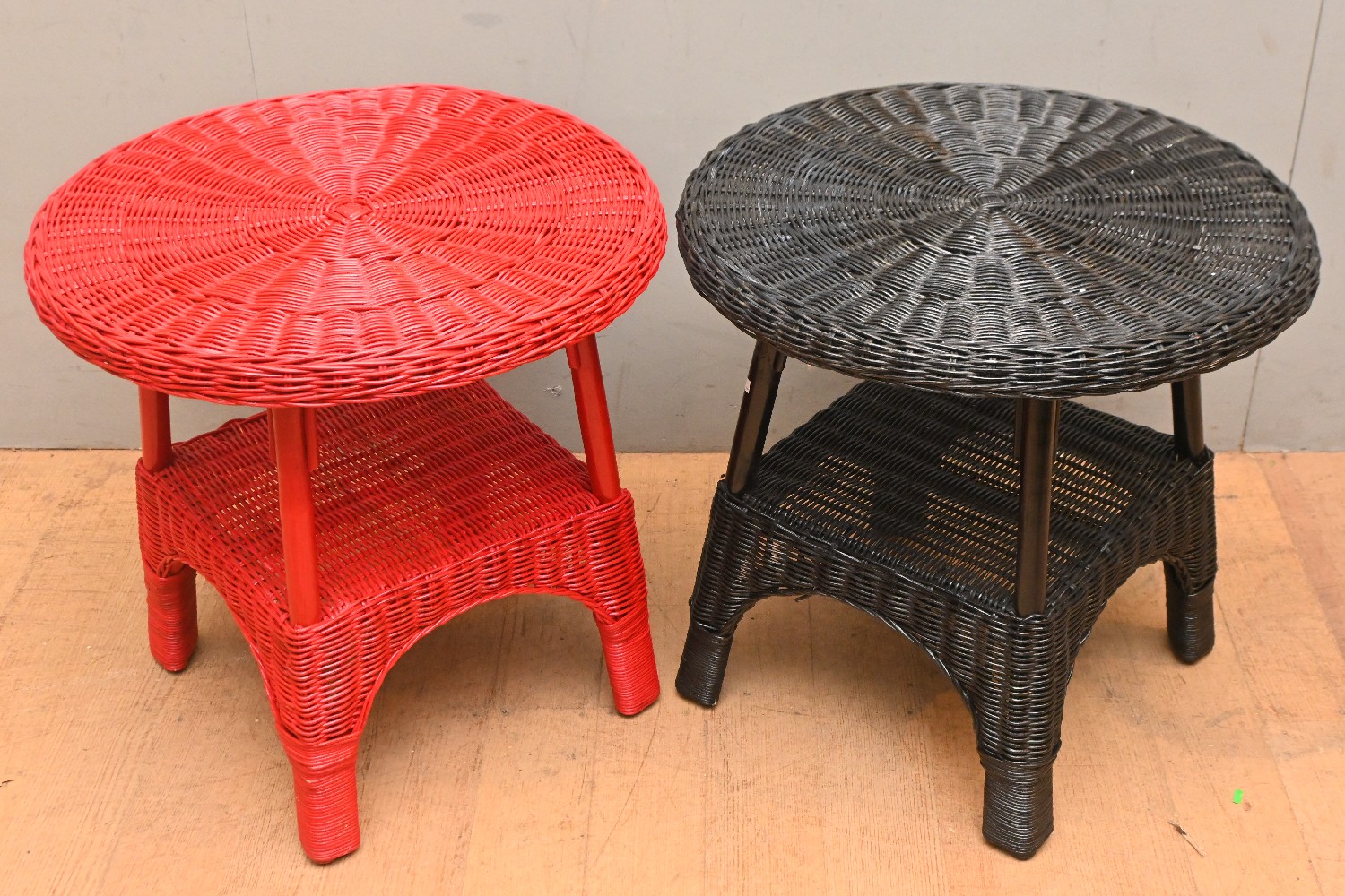 TWO WICKER SIDE TABLES (53H X 54D CM) (LEONARD JOEL DELIVERY SIZE: LARGE)