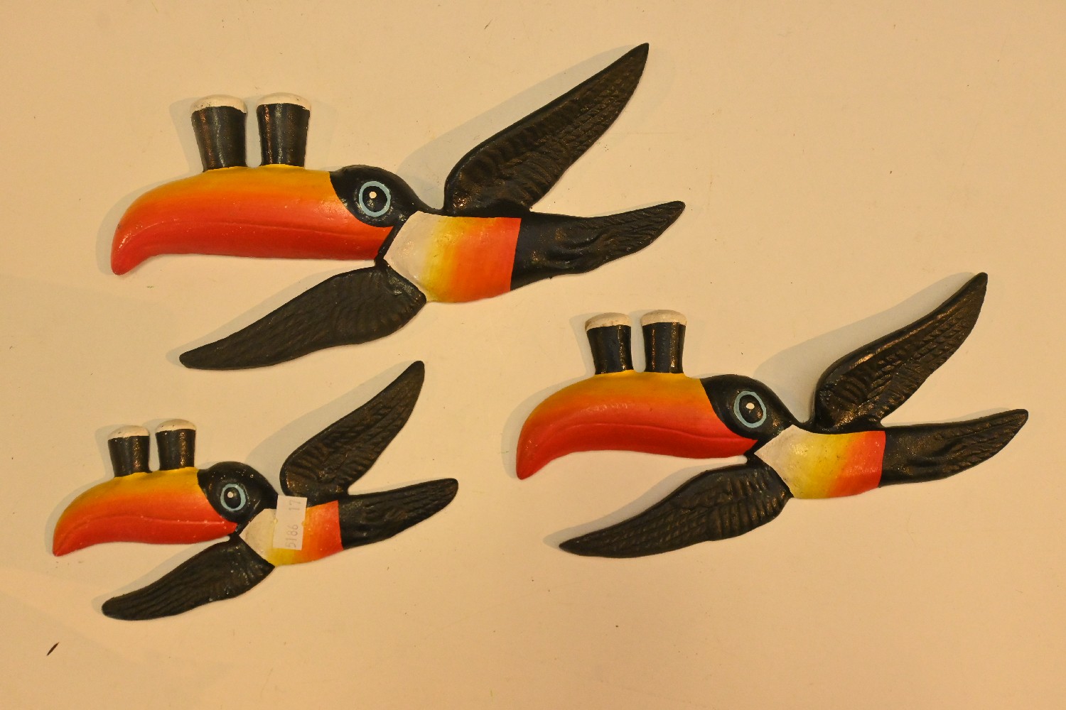 A SET OF THREE CAST METAL GUINNESS TOUCAN WALL PLAQUES (26W CM) (LEONARD JOEL DELIVERY SIZE: MEDIUM)