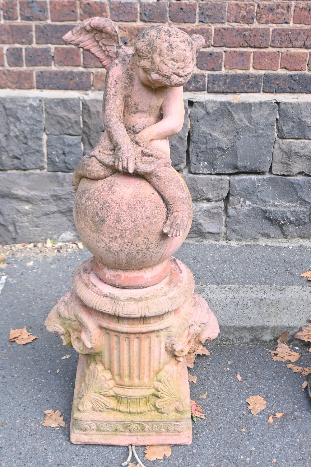 A CONCRETE CUPID FOUNTAIN ON BASE (A/F) (113H X 51W X 34D CM) (PLEASE NOTE THIS HEAVY ITEM MUST BE REMOVED BY CARRIERS AT THE CUSTOMER'S EXPENSE. LEONARD JOEL STAFF CANNOT ASSIST CARRYING THIS ITEM) (LARGE ITEM)