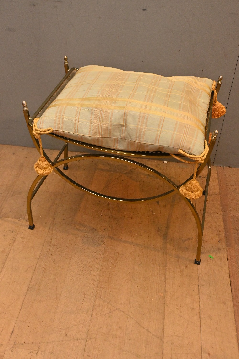 A BRASS THRONE CHAIR WITH CUSHION (53H X 60W X 44D CM) (LEONARD JOEL DELIVERY SIZE: LARGE)