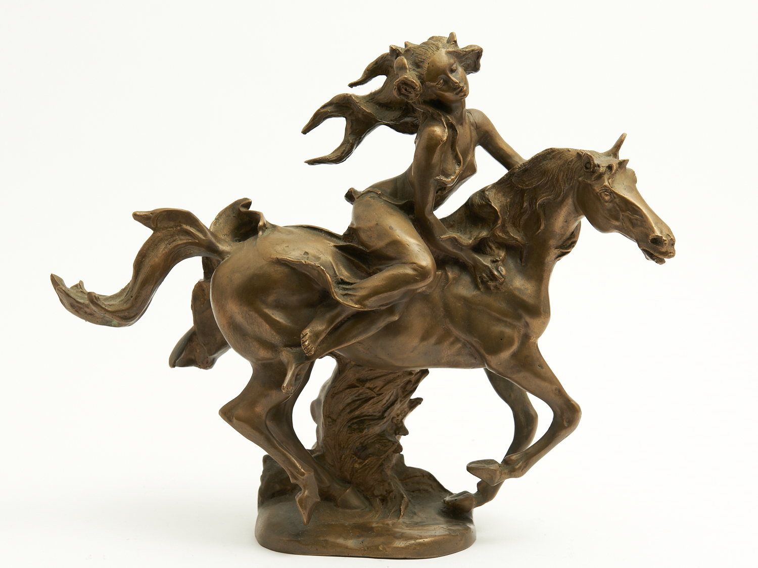 AN ART NOUVEAU STYLE BRONZE OF A WOMAN ON HORSEBACK H.35CM, LEONARD JOEL LOCAL DELIVERY