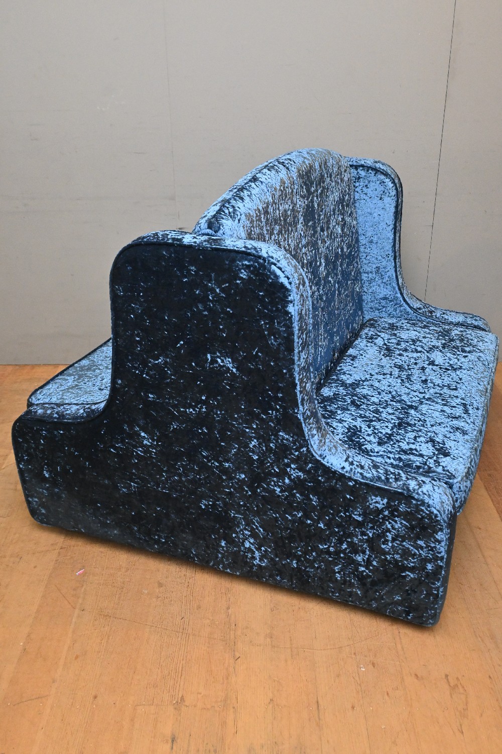 A RETRO TWIN SEATED UPHOLSTERED BENCH (110H X 126W X 124D CM) (PLEASE NOTE THIS HEAVY ITEM MUST BE REMOVED BY CARRIERS AT THE CUSTOMER'S EXPENSE. LEONARD JOEL STAFF CANNOT ASSIST CARRYING THIS ITEM) (LARGE ITEM)
