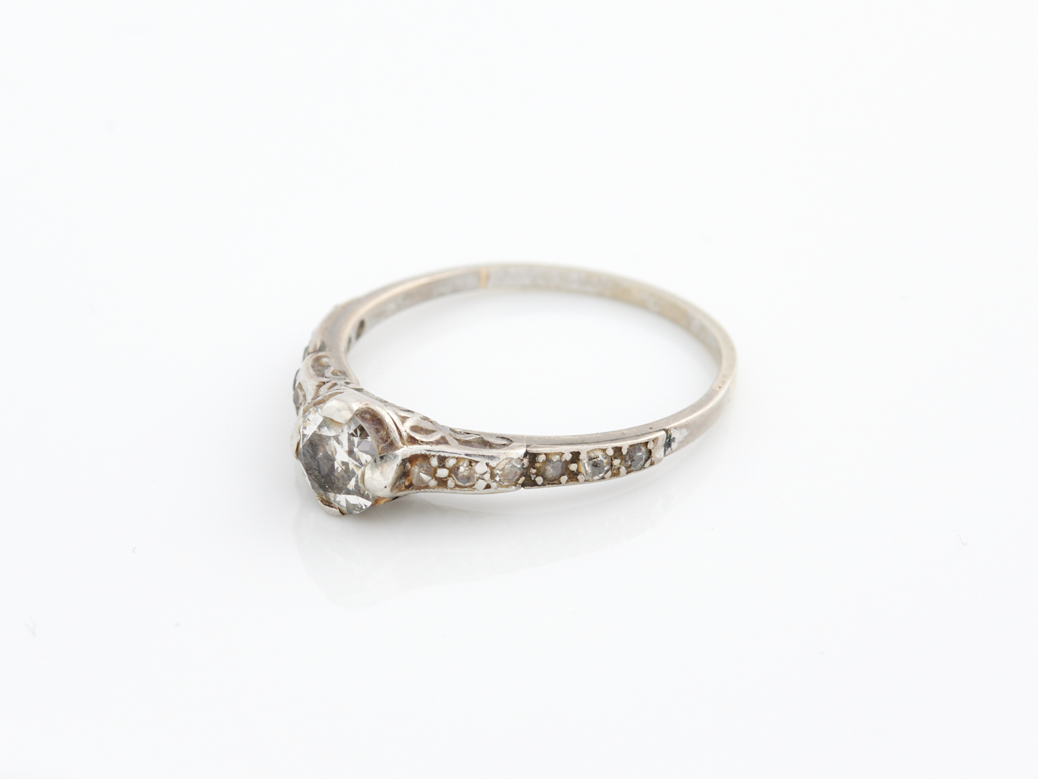 A DIAMOND SOLITAIRE RING IN 18CT WHITE GOLD AND PLATINUM, SIZE P