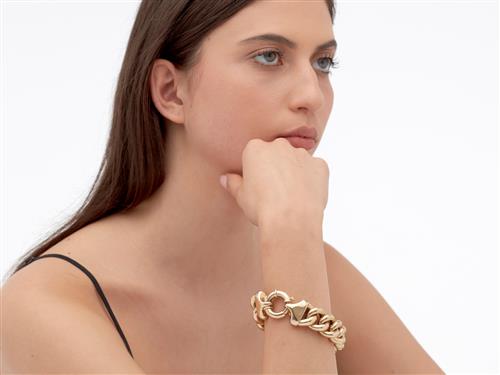 Comprising individually stamped curblinks, completed by a bolt ring clasp, length approximately 200mm, gross weight approximately 82.0 grams.