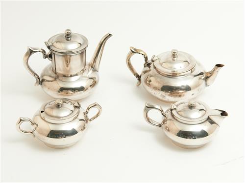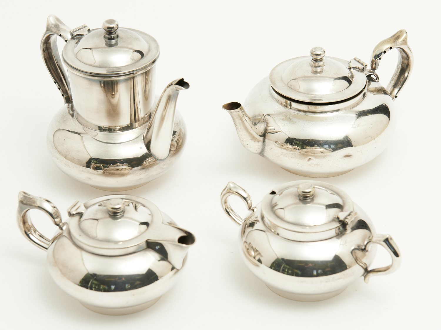 A ROBUR CHALLENGE FOUR PIECE SET INCLUDING A SILVER PLATE COFFEE POT, TEA POT, MILK POT AND SUGAR POT H.17CM (COFFEE POT), LEONARD JOEL LOCAL DELIVERY