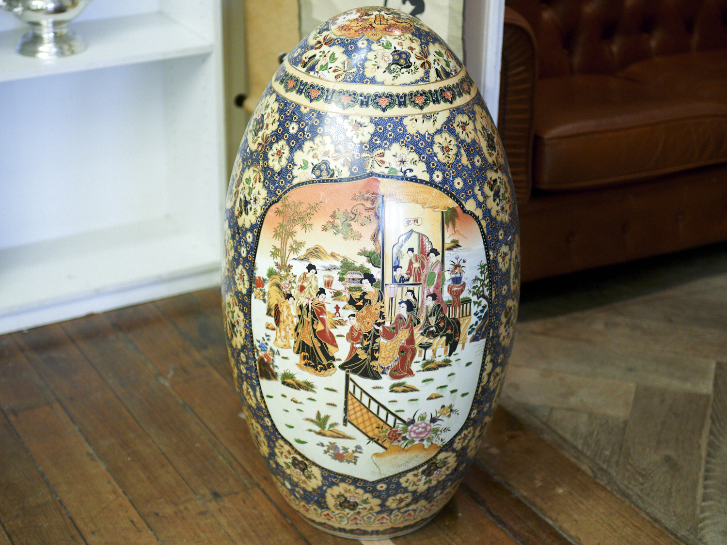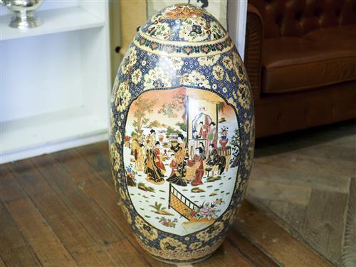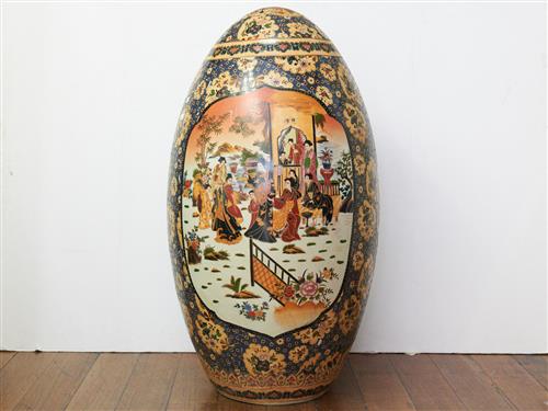 A LARGE CANTON EXPORTWARE EGG WITH TRANSFER AND ENAMEL EMBELLISHED MATRIMONIAL SCENES H.89CM, LEONARD JOEL LOCAL DELIVERY: LARGE