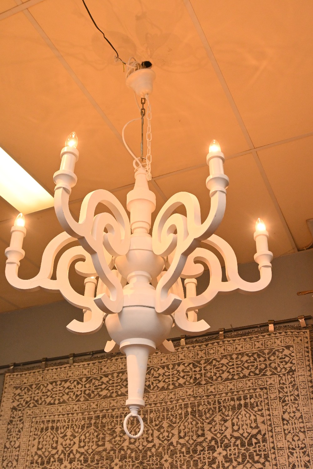 A "MOOOI' STYLE PAPER SIX BRANCH CHANDELIER (A/F) (150H X 85D CM) (LEONARD JOEL DELIVERY SIZE: X-LARGE)