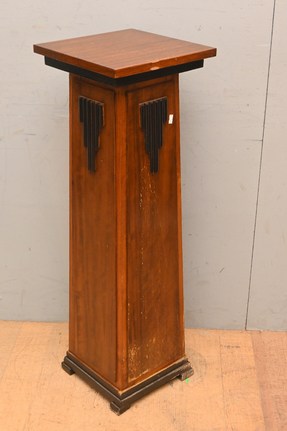A 1930s ART DECO OAK PEDESTAL (A/F) (96H X 31W X 31D CM) (LEONARD JOEL DELIVERY SIZE: LARGE)
