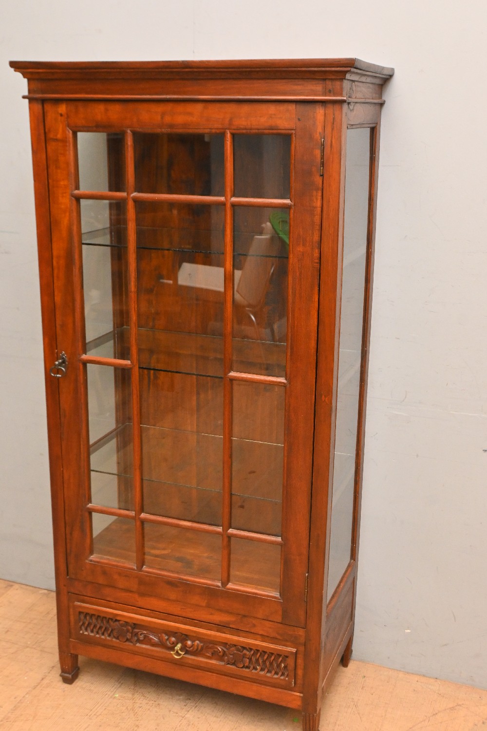 A MAHOGANY AND GLAZED DISPLAY CABINET (150H X 72W X 40D CM) (PLEASE NOTE THIS HEAVY ITEM MUST BE REMOVED BY CARRIERS AT THE CUSTOMER'S EXPENSE. LEONARD JOEL STAFF CANNOT ASSIST CARRYING THIS ITEM) (LARGE ITEM)