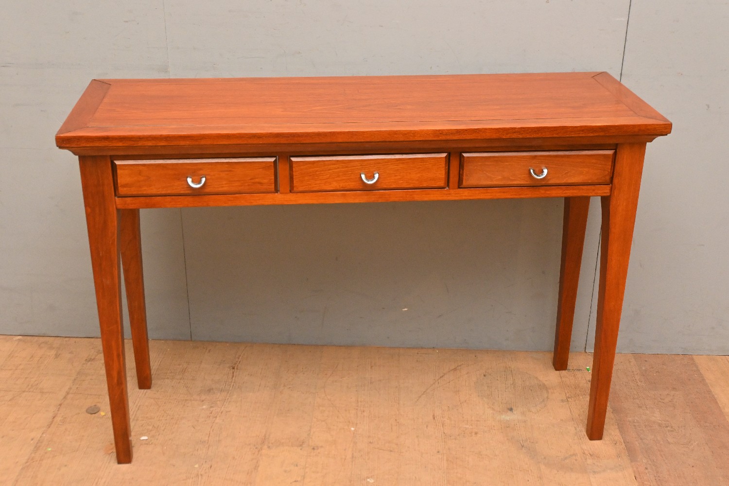 A CONTEMPORARY THREE DRAWER HALL TABLE (A/F) (80H X 120W X 40D CM) (LEONARD JOEL DELIVERY SIZE: X-LARGE)