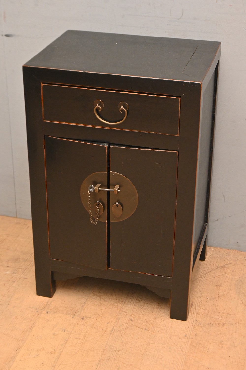 A CHINESE EBONISED BEDSIDE (70H X 45W X 35D CM) (LEONARD JOEL DELIVERY SIZE: LARGE)