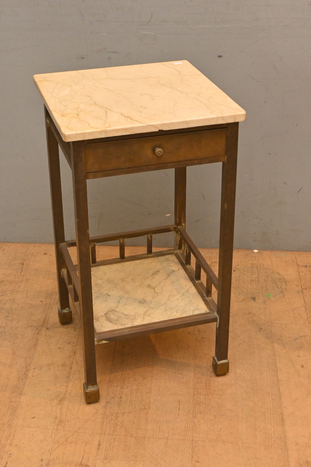 A FRENCH STYLE MARBLE TOPPED BEDSIDE CABINET (72H X 39W X 39D CM) (LEONARD JOEL DELIVERY SIZE: X-LARGE)