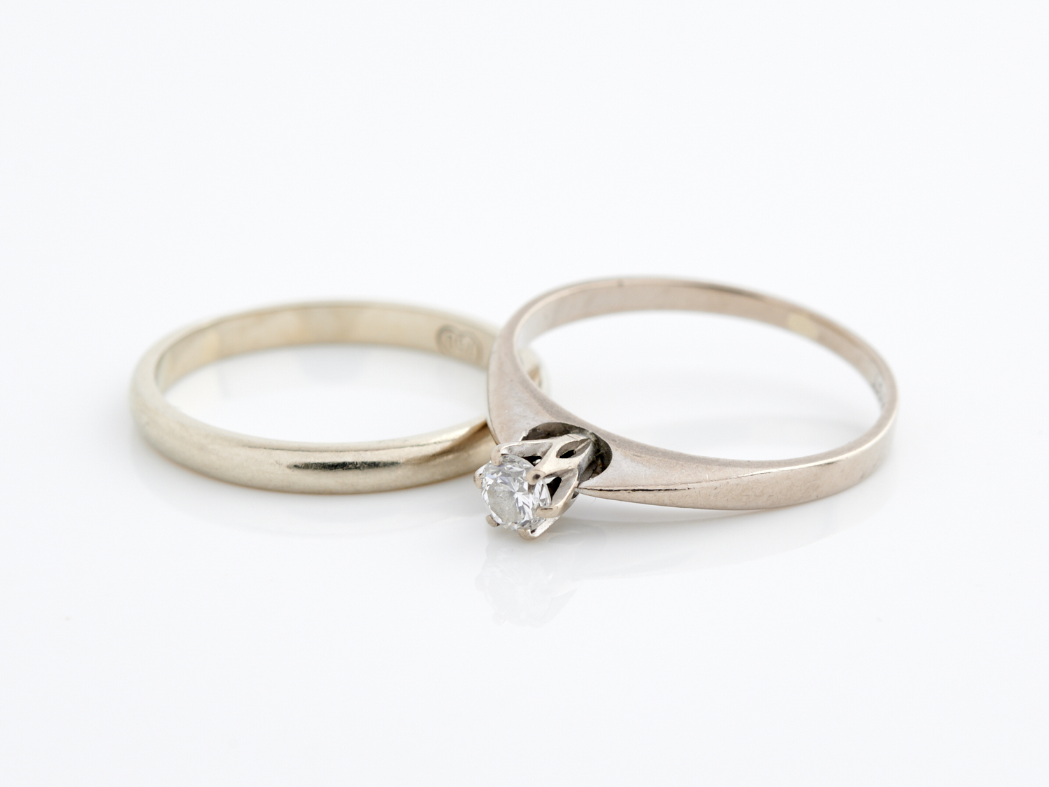 A SOLITAIRE DIAMOND RING IN 18CT WHITE GOLD, TOGETHER WITH A WEDDER IN 18CT WHITE GOLD, SIZE J AND K, 3.4GMS