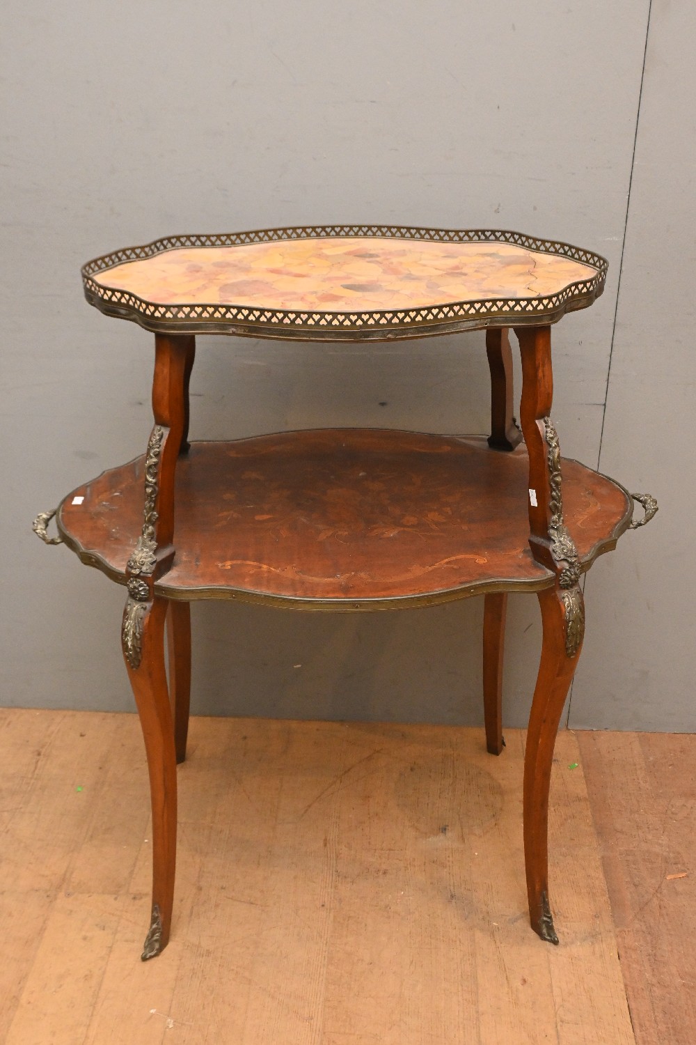 FRENCH TWO TIER ETAGERE WITH MARBLE TOP (A/F) (98H X 89W X 46D CM) (LEONARD JOEL DELIVERY SIZE: LARGE)
