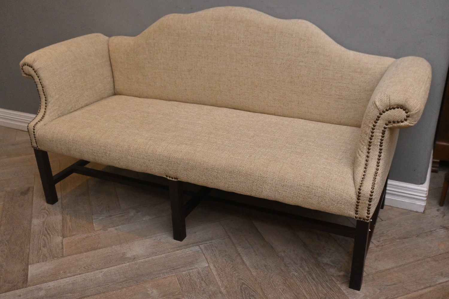 A CHIPPENDALE STYLE UPHOLSTERED SOFA (98H X 193W X 72D CM) (PLEASE NOTE THIS HEAVY ITEM MUST BE REMOVED BY CARRIERS AT THE CUSTOMER'S EXPENSE. LEONARD JOEL STAFF CANNOT ASSIST CARRYING THIS ITEM) (LARGE ITEM)