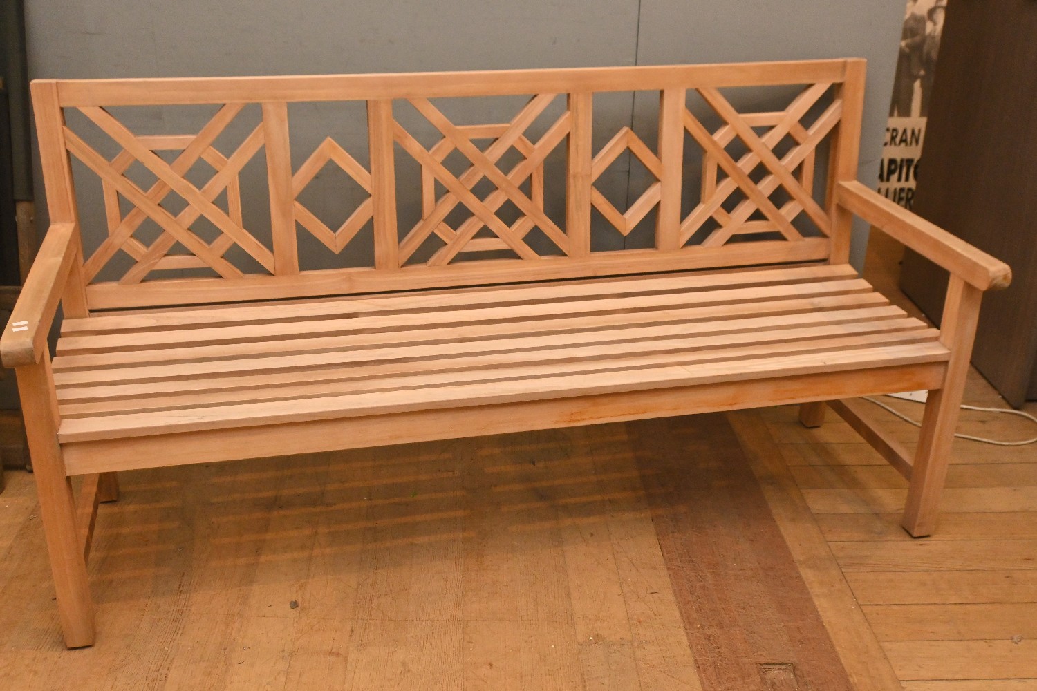 A TEAK GARDEN BENCH SEAT (94H X 180W X 64D CM) (PLEASE NOTE THIS HEAVY ITEM MUST BE REMOVED BY CARRIERS AT THE CUSTOMER'S EXPENSE. LEONARD JOEL STAFF CANNOT ASSIST CARRYING THIS ITEM) (LARGE ITEM)