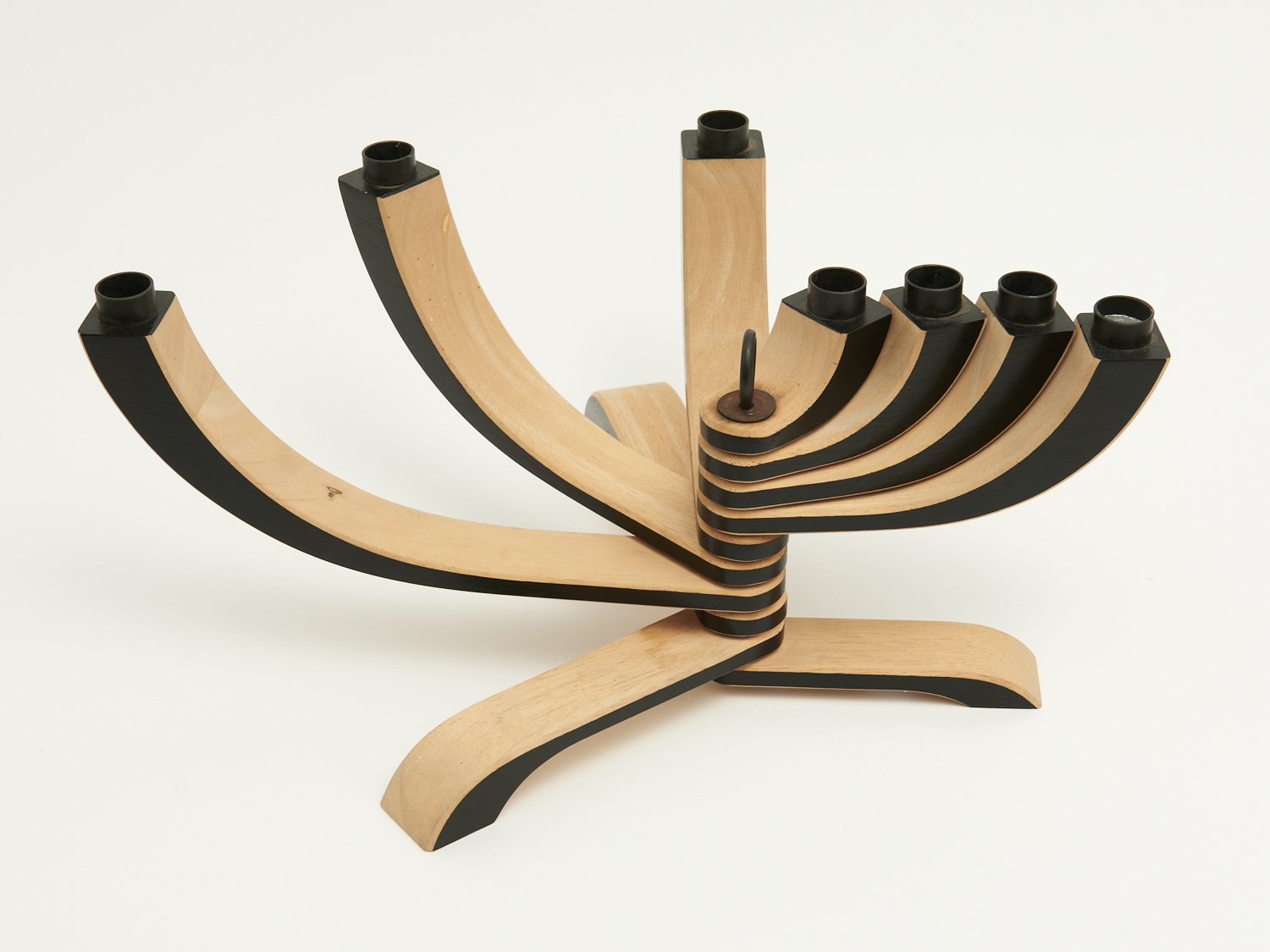 A CONTEMPORARY STOCKHOLM DESIGN HOUSE WOODEN SEVEN SCONCE MOVABLE CANDELABRA H.18CM, LEONARD JOEL DELIVERY SIZE: SMALL