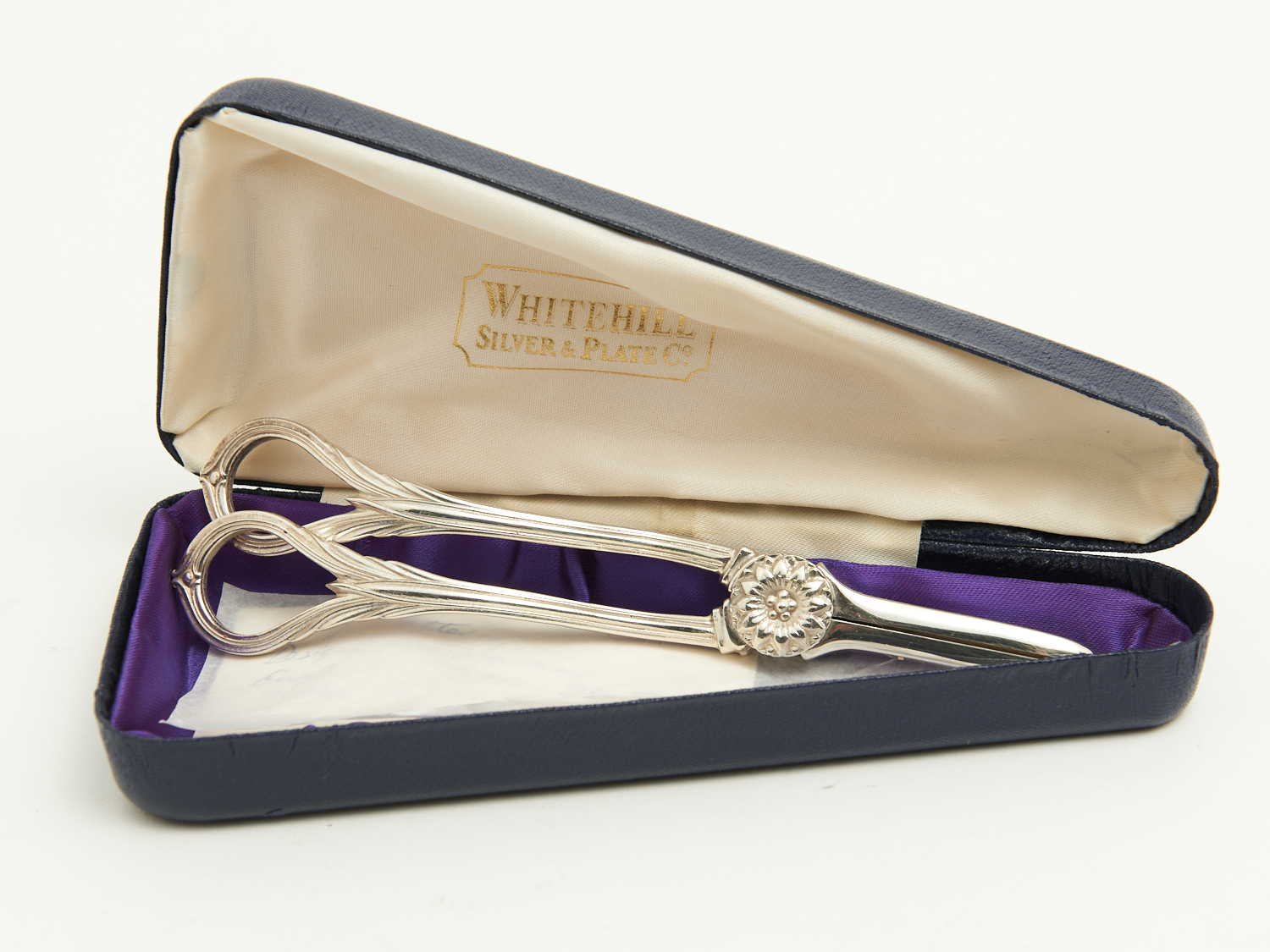 A PAIR OF WHITEHILL SILVER PLATE GRAPE SCISSORS IN CASE L.16CM, LEONARD JOEL DELIVERY SIZE: SMALL