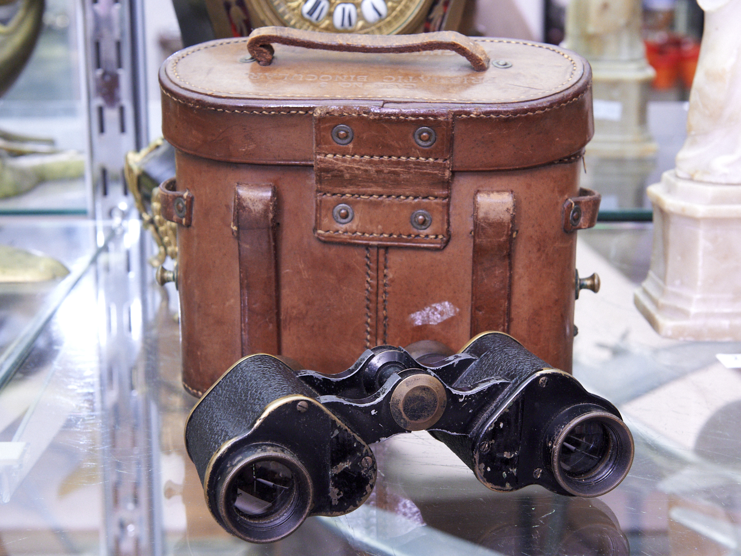 A PAIR OF 1918 MARKED WORLD WAR I BINOCULARS IN ORIGINAL CASE, BINOCULAR PRISMATIC, IN ORIGINAL STAMPED CASE W.18CM (CASE), LEONARD JOEL DELIVERY SIZE: SMALL