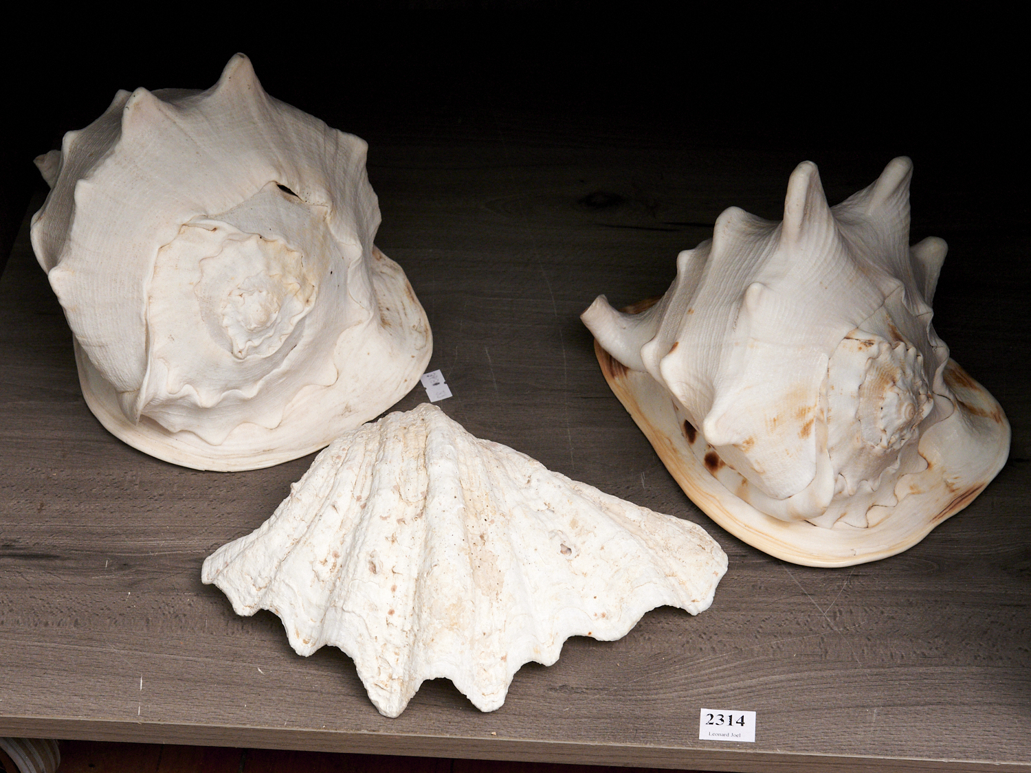 A GROUP OF THREE LARGE SHELLS L.24CM (LARGEST), LEONARD JOEL DELIVERY SIZE: SMALL
