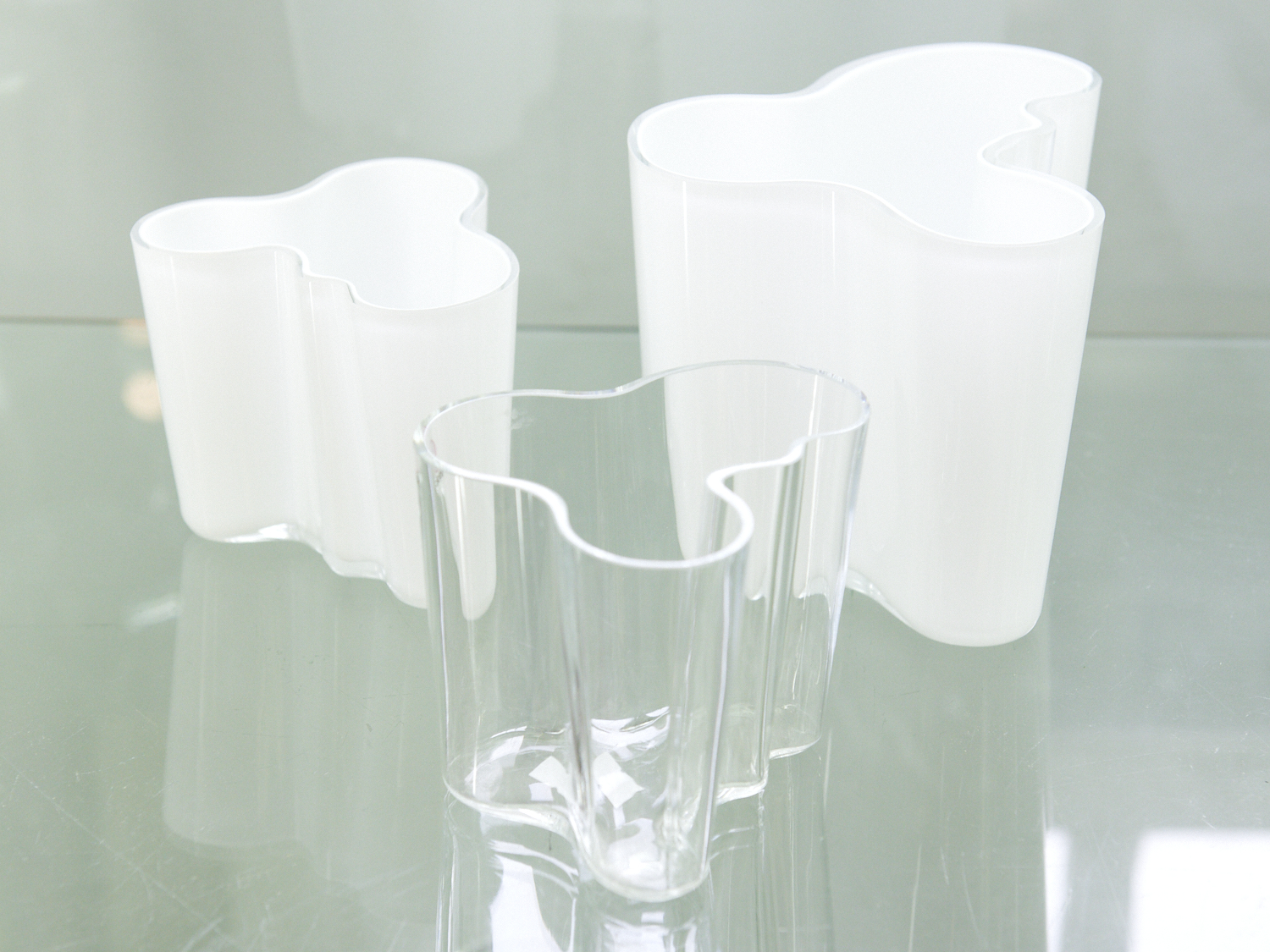A GROUP OF 3 SIGNED ITALIAN IITTALA ALVAR ALTO GLASS VASES H.12CM (LARGEST), LEONARD JOEL DELIVERY SIZE: SMALL