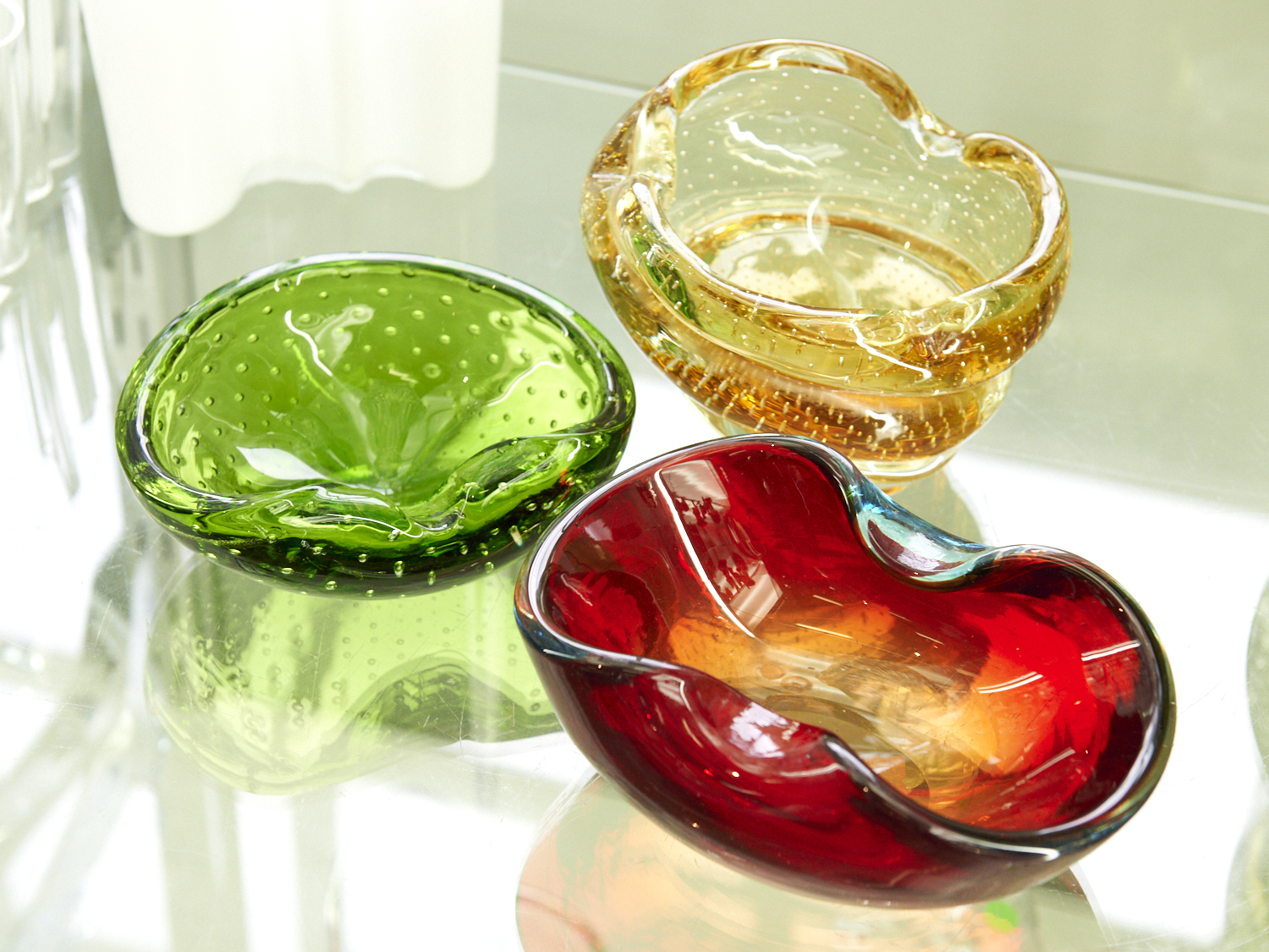 A GROUP OF THREE VINTAGE 1960S ITALIAN MURANO BOWLS W.18CM (WIDEST), LEONARD JOEL DELIVERY SIZE: MEDIUM