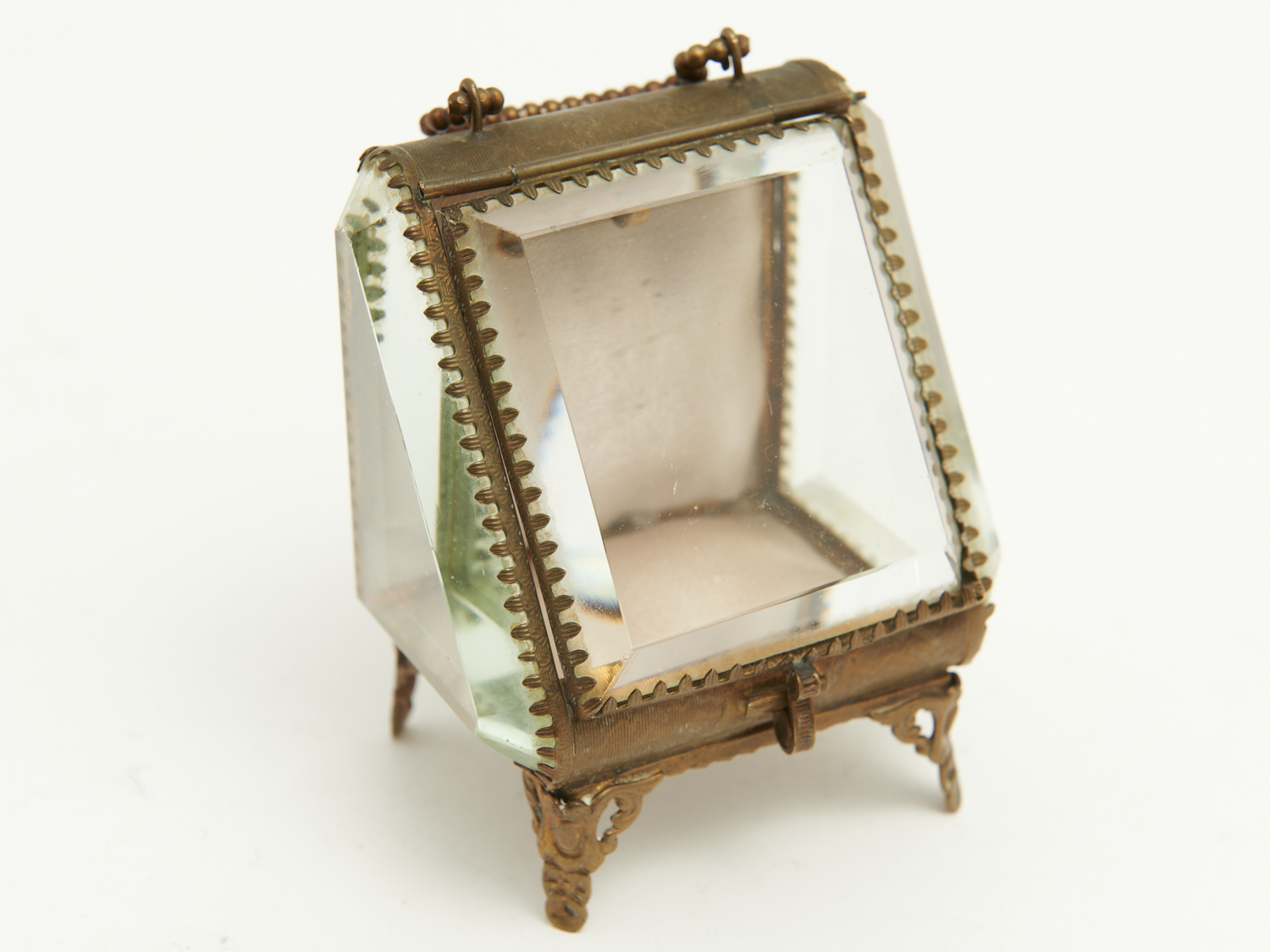 AN ANTIQUE FRENCH FACETED GLASS BRASS MOUNTED TABLE WATCH CASE H.9CM, LEONARD JOEL DELIVERY SIZE: SMALL
