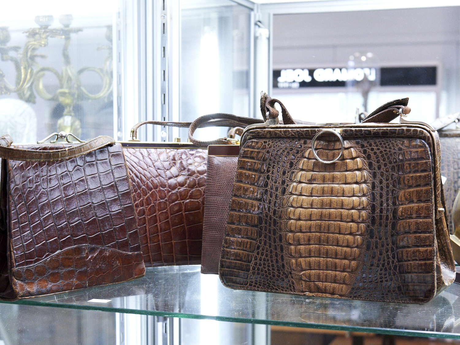 A COLLECTION OF FOUR VINTAGE CROCODILE AND SNAKE SKIN HANDBAGS IN EXCELLENT CONDITION W.27CM (WIDEST), LEONARD JOEL DELIVERY SIZE: SMALL