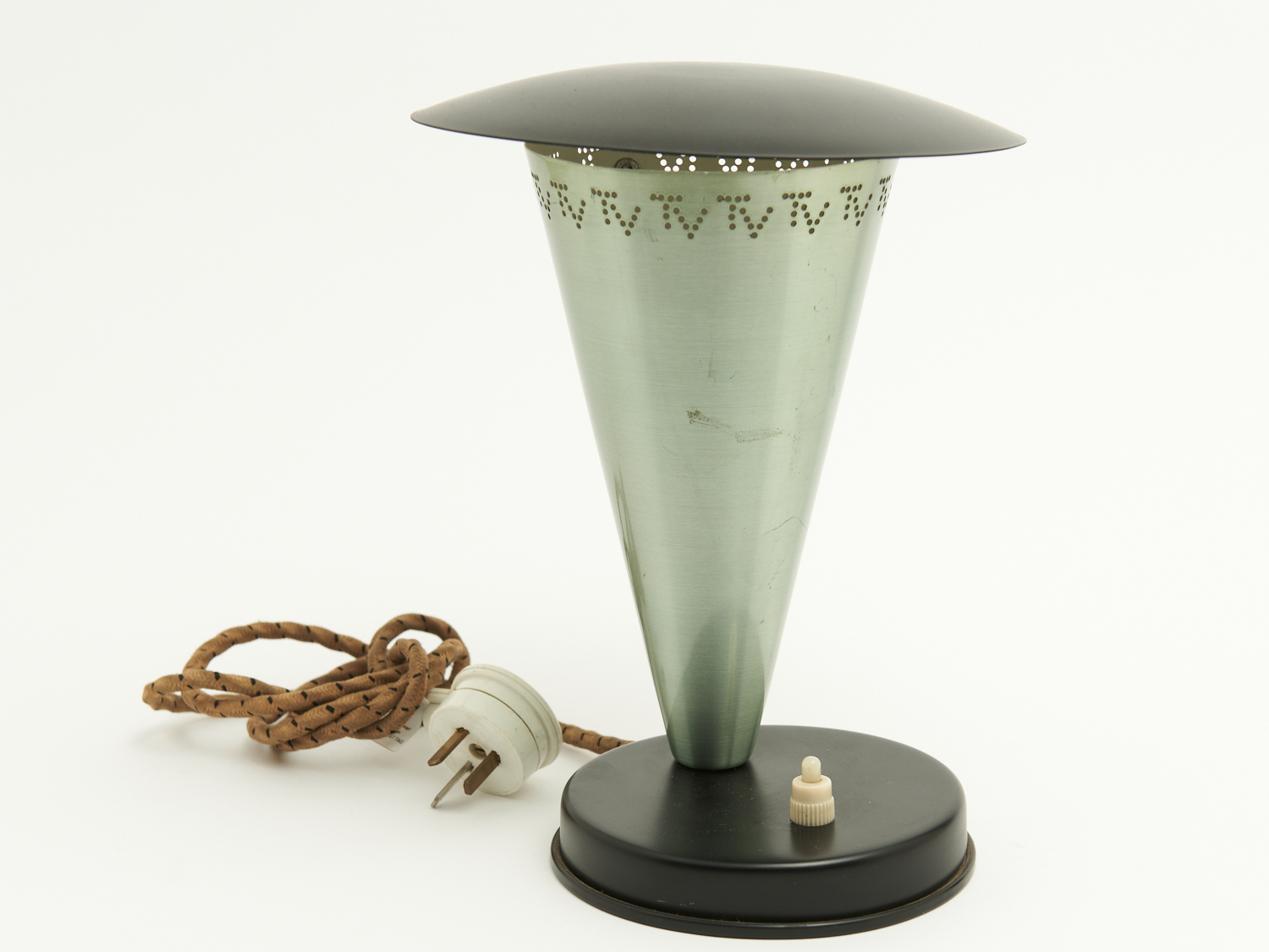 A 1950S GREEN AND BLACK ANODISED ALUMINIUM RITELITE S-39 TV LAMP H.25CM, LEONARD JOEL DELIVERY SIZE: SMALL