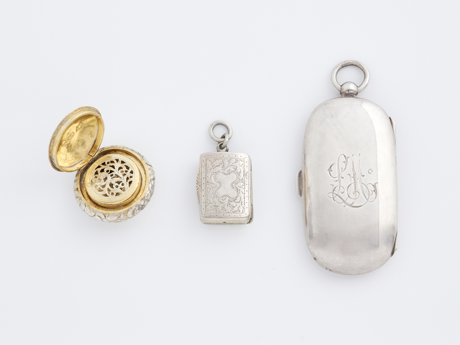 A SOVEREIGN CASE IN SILVER, TOGETHER WITH TWO VINAIGRETTE CASES IN SILVER