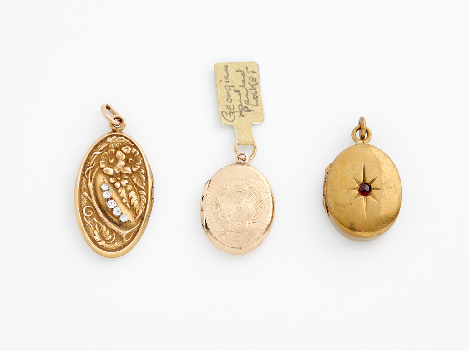 A COLLECTION OF THREE LOCKETS, ONE IN GOLD 9CT GOLD AND TWO IN GOLD PLATE