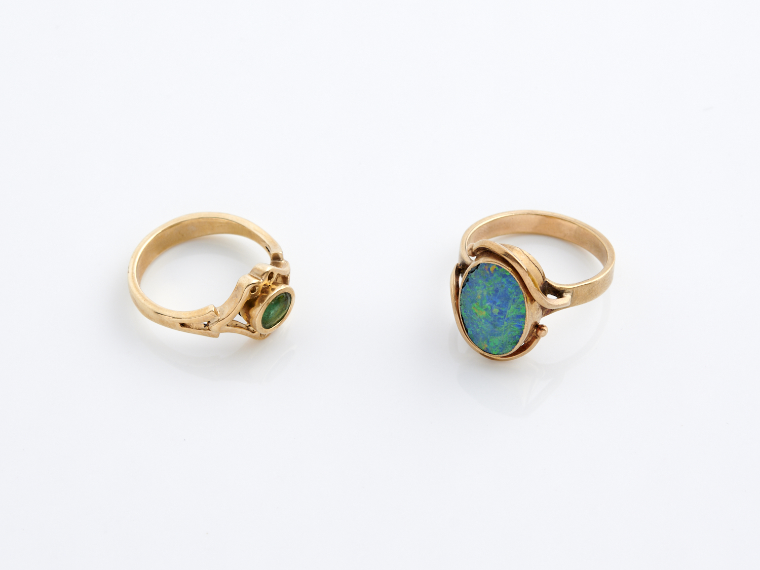 AN OPAL DOUBLET RING IN 9CT GOLD, ALONG WITH A GEM SET RING IN 9CT GOLD, SIZES K AND L-M, 6.5GMS