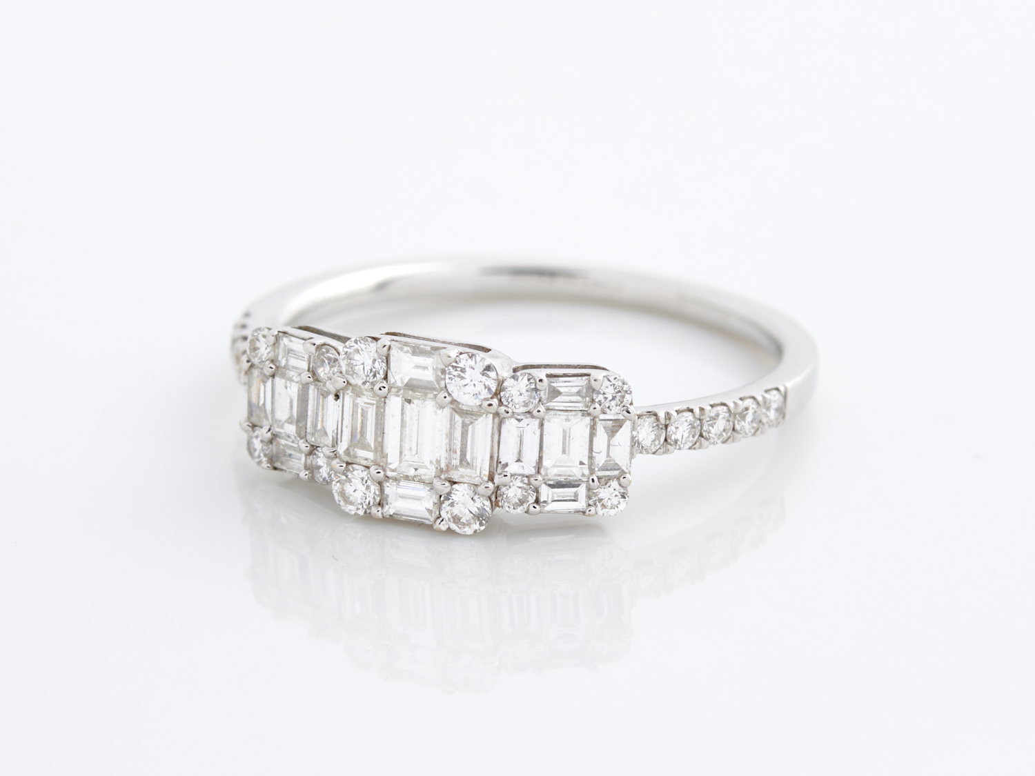 A DIAMOND RING IN 18CT WHITE GOLD, RING SIZE L