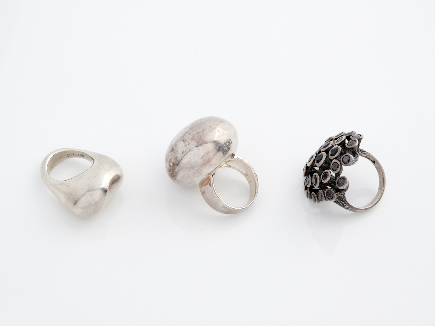THREE VINTAGE RINGS IN SILVER, INCLUDING ONE GEM-SET