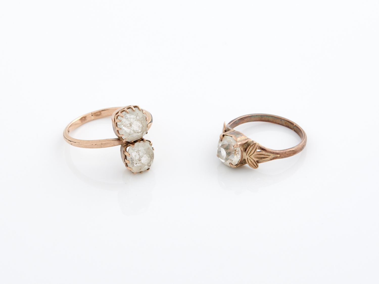TWO WHITE STONE RINGS IN GOLD IN 9CT GOLD AND LOW CARAT GOLD, RING SIZES P AND K
