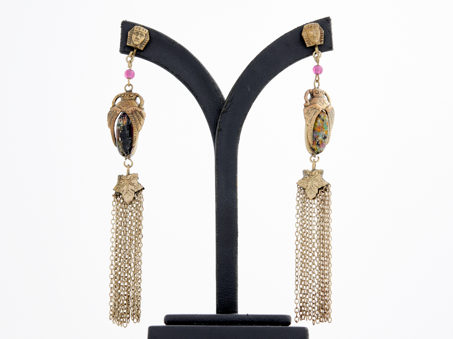 A PAIR OF EGYPTIAN REVIVAL EARRINGS, CIRCA 1920, TO SCREWBACK FITTINGS, 100MM