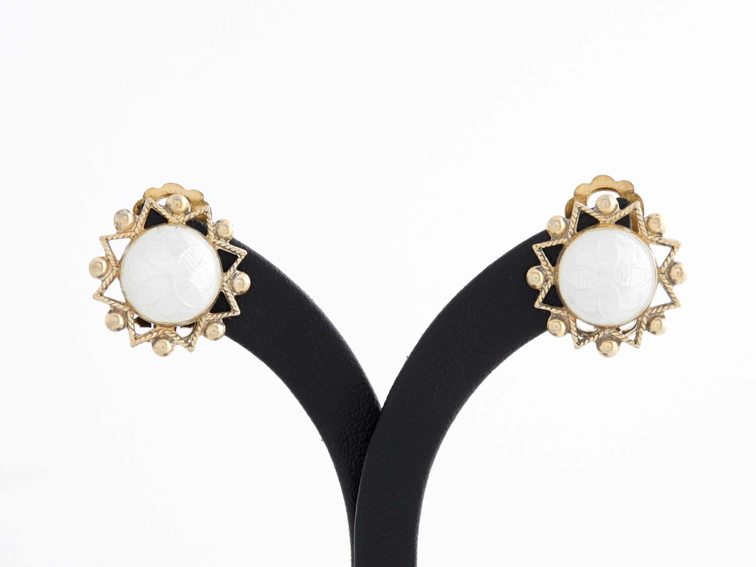 A PAIR OF VINTAGE DANISH ENAMELLED EARRINGS IN SILVER GILT, TO CLIP ON FITTINGS