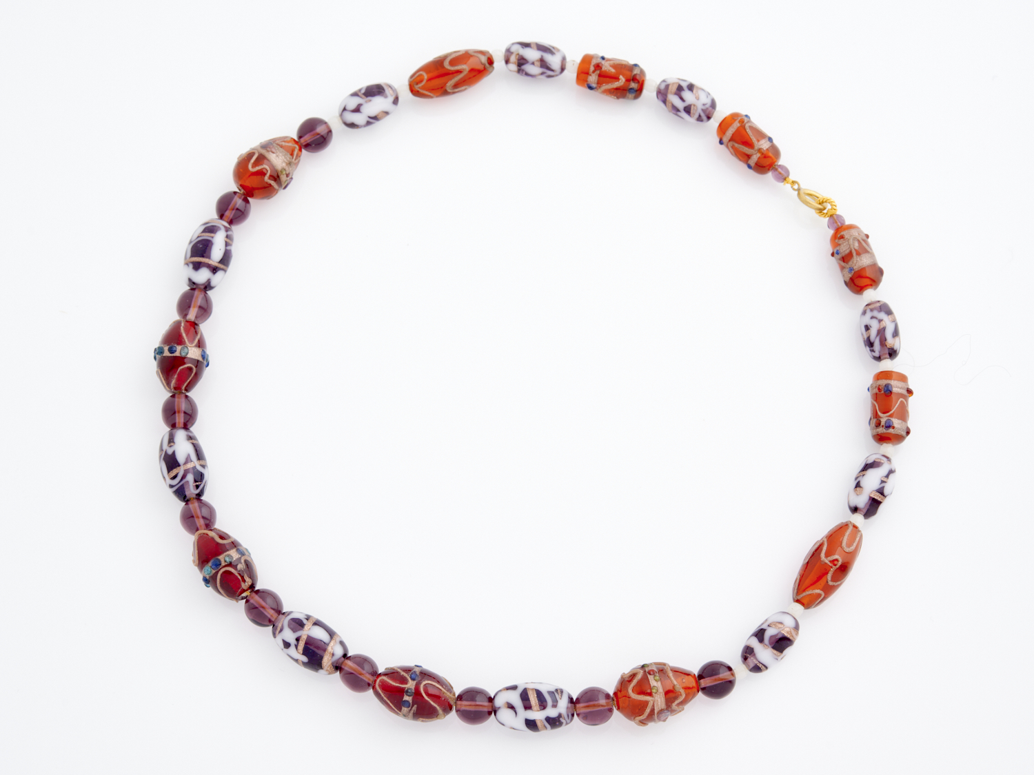 A VINTAGE STRAND OF MURANO GLASS BEADS, LENGTH 570MM