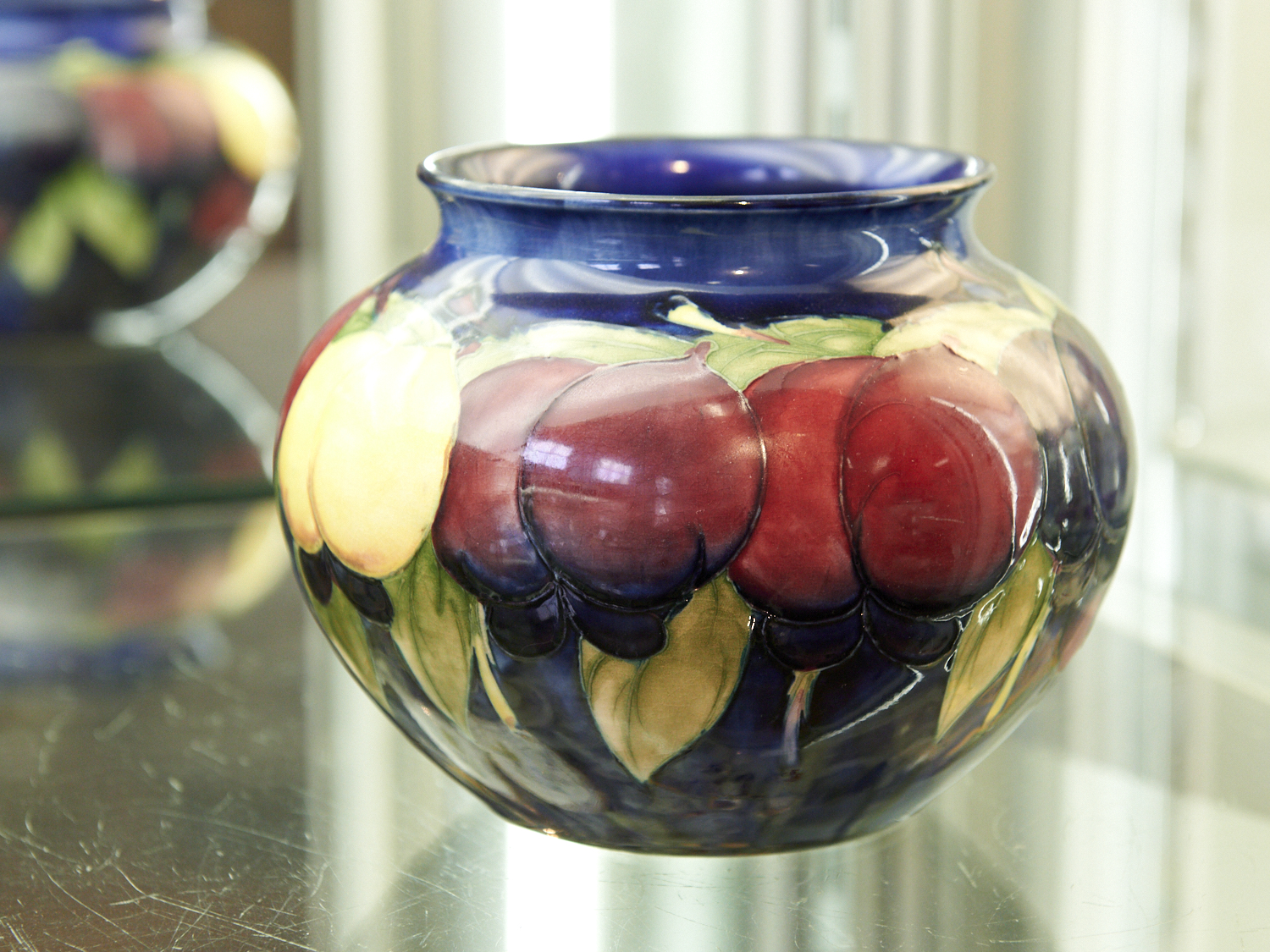 A MOORCROFT WISTERIA PATTERN VASE H.14CM (A/F), LEONARD JOEL DELIVERY SIZE: SMALL