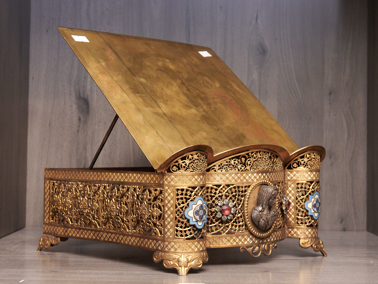 AN ANTIQUE FRENCH GILDED BIBLE STAND H.29CM, LEONARD JOEL DELIVERY SIZE: SMALL