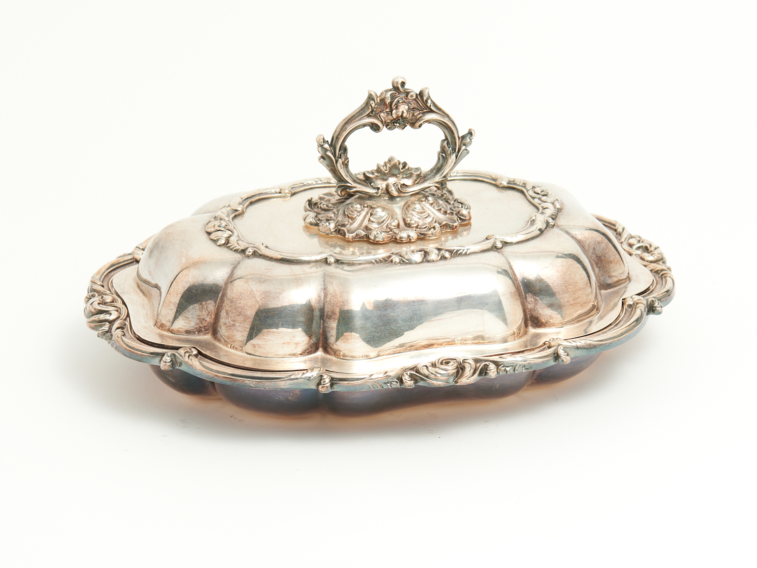 A GOOD QUALITY SILVER PLATE TUREEN L.33CM, LEONARD JOEL DELIVERY SIZE: SMALL